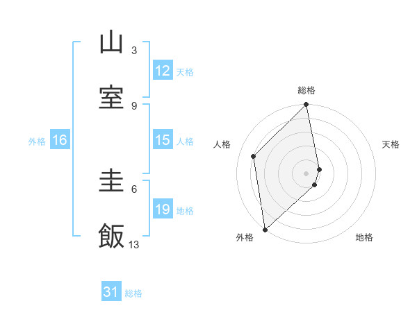 山室 圭飯さんの総格は31画の5点!