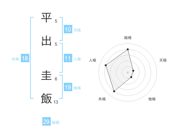 平出 圭飯さんの総格は29画の4点!