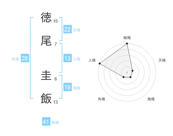 徳尾 圭飯さんの総格は41画の5点!