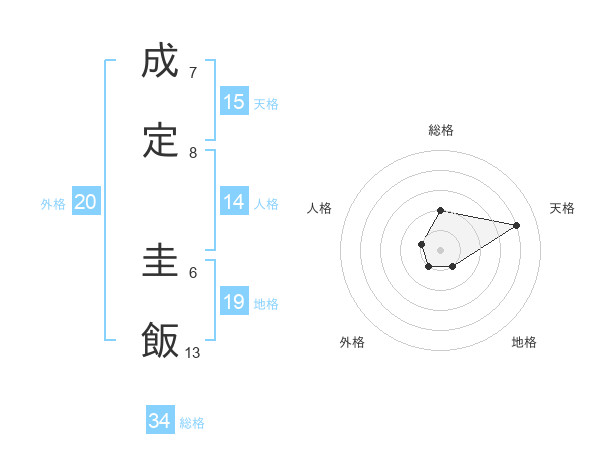 成定 圭飯さんを姓名の画数から五運を鑑定