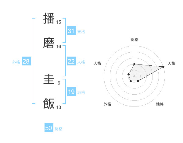 播磨 圭飯さんの総格は50画の2点!