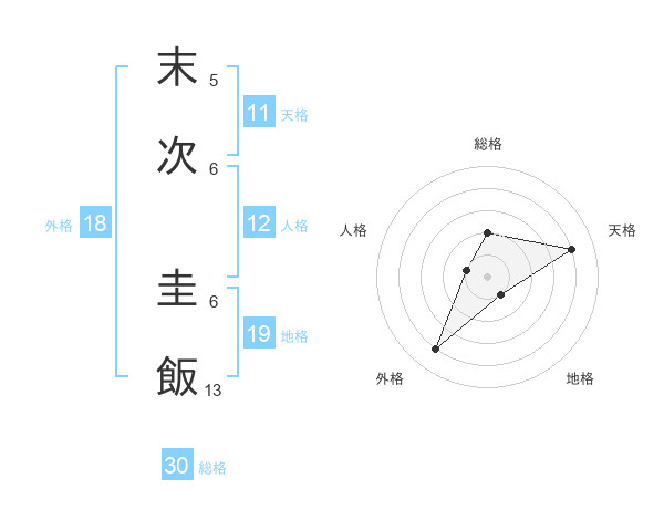 末次 圭飯さんの天格は11画の4点!