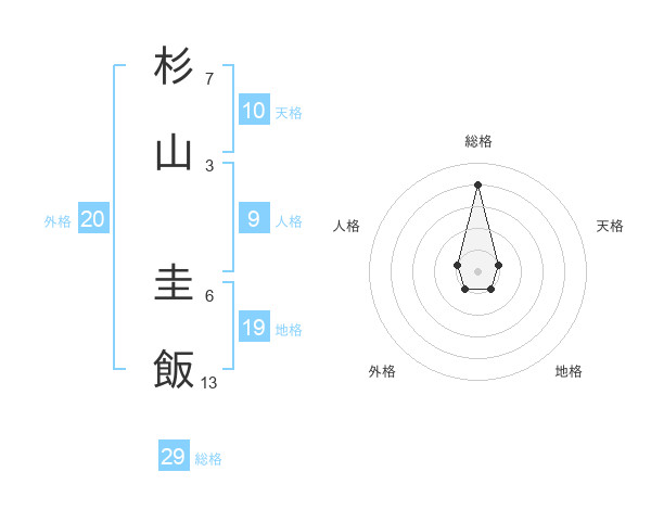 杉山 圭飯さんの総格は29画の4点!