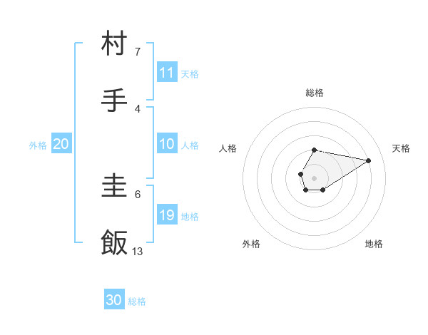 村手 圭飯さんを姓名の画数から五運を鑑定