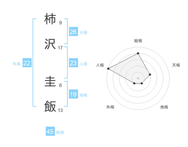 柿沢 圭飯さんを姓名の画数から五運を鑑定