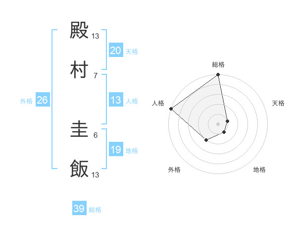 殿村 圭飯さんの総格は39画の5点!
