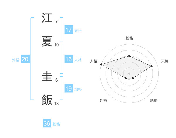 江夏 圭飯さんの天格は17画の4点!