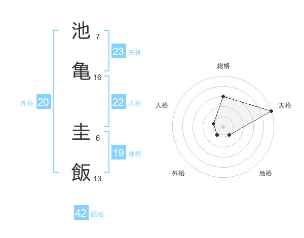 池亀 圭飯さんを姓名の画数から五運を鑑定
