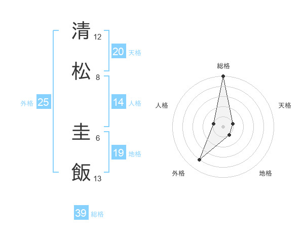 清松 圭飯さんの天格は20画の1点!
