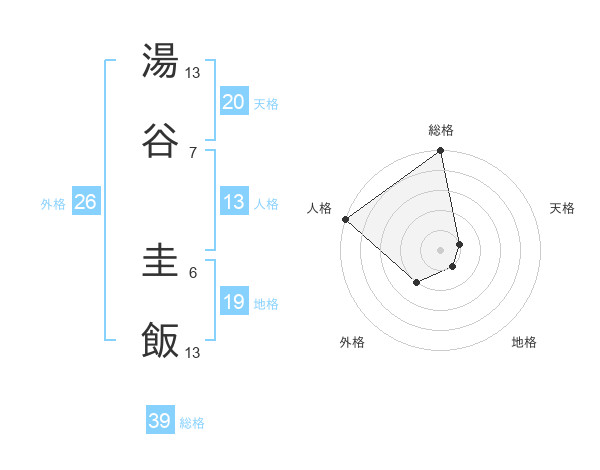 湯谷 圭飯さんの総格は39画の5点!