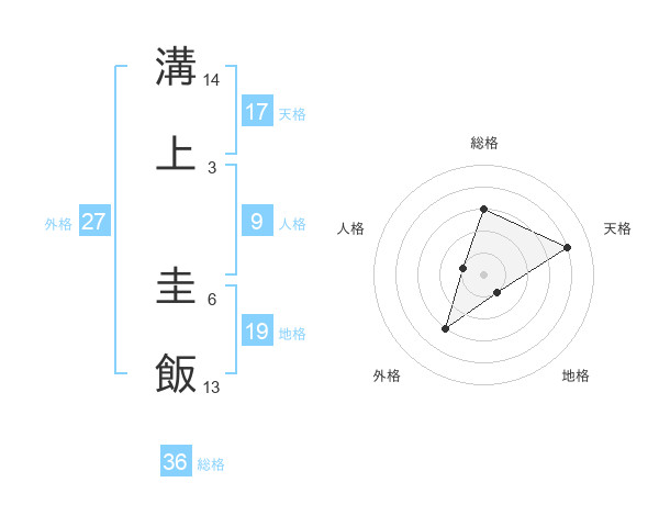 溝上 圭飯さんの天格は17画の4点!
