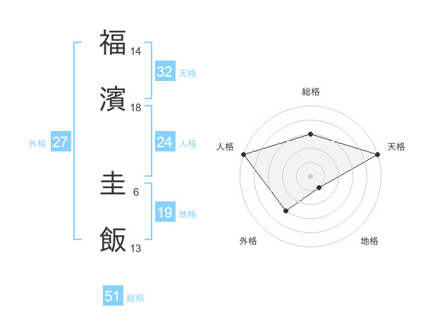 福濱 圭飯さんを姓名の画数から五運を鑑定