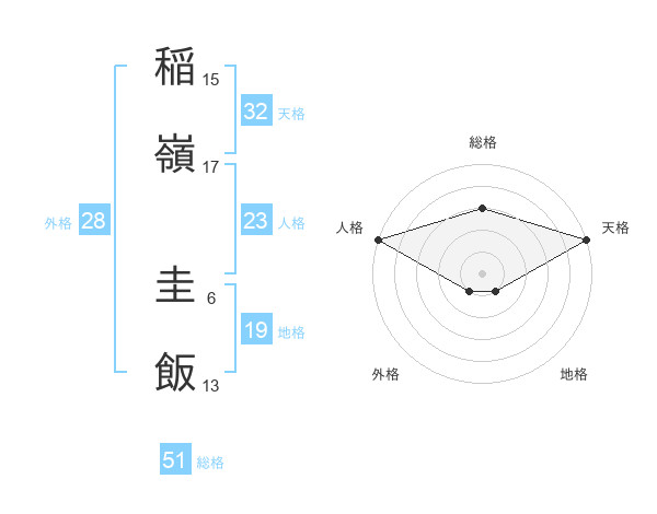 稲嶺 圭飯さんの総格は51画の3点!
