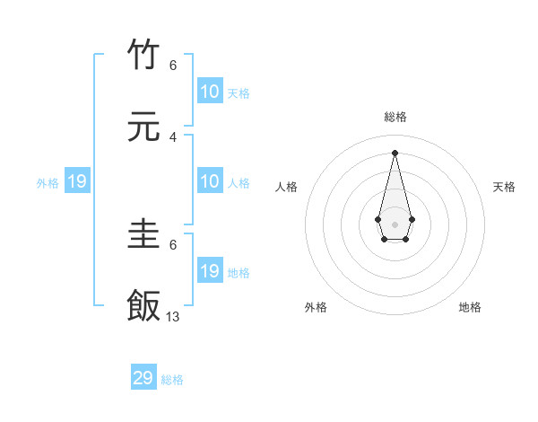 竹元 圭飯さんの総格は29画の4点!