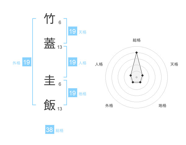 竹蓋 圭飯さんの総格は38画の4点!