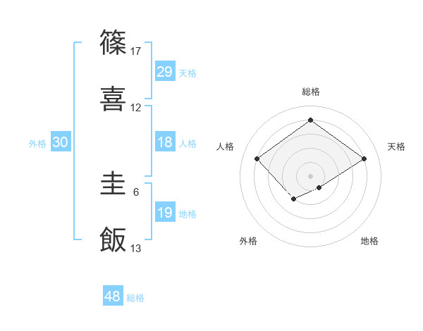 篠喜 圭飯さんを姓名の画数から五運を鑑定