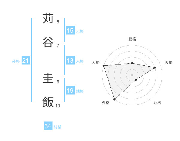 苅谷 圭飯さんを姓名の画数から五運を鑑定