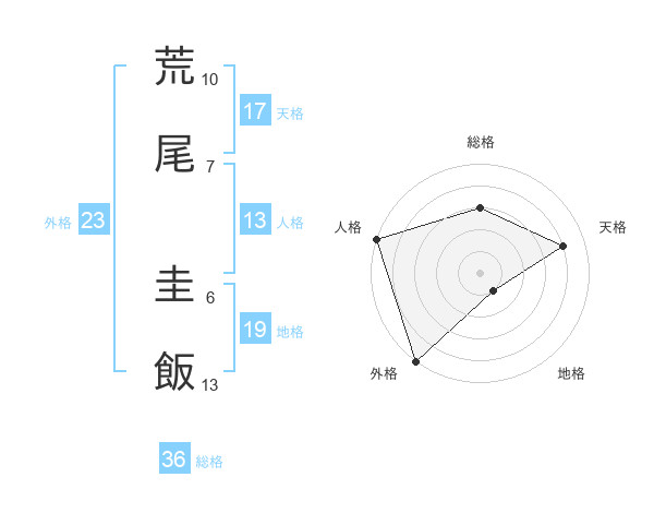 荒尾 圭飯さんを姓名の画数から五運を鑑定