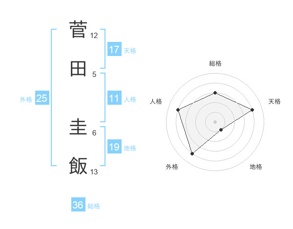 菅田 圭飯さんを姓名の画数から五運を鑑定