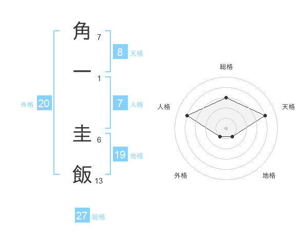 角一 圭飯さんを姓名の画数から五運を鑑定