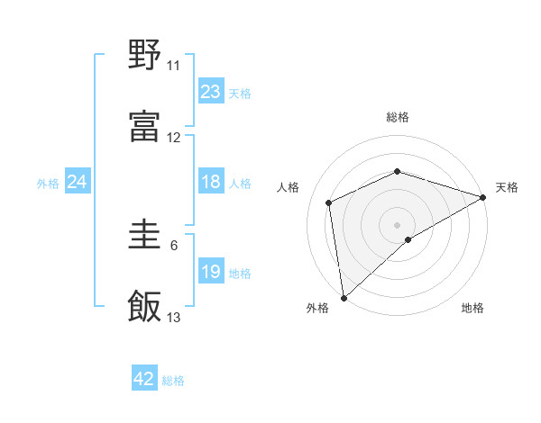 野富 圭飯さんの外格は24画の5点!