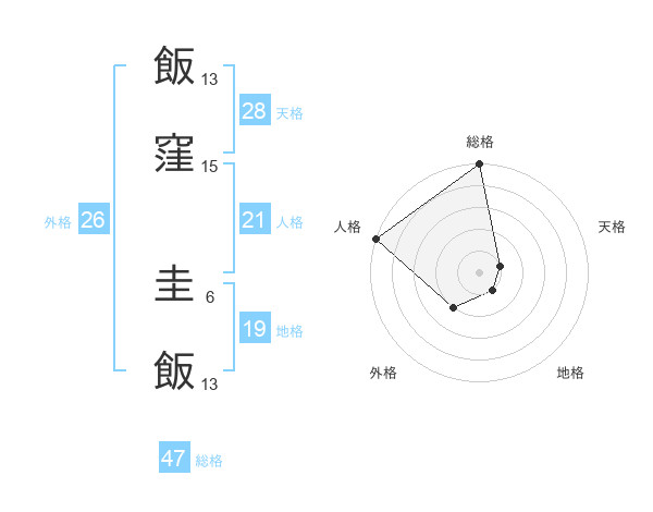 飯窪 圭飯さんの総格は47画の5点!