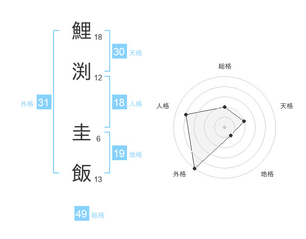 鯉渕 圭飯さんの総格は49画の2点!