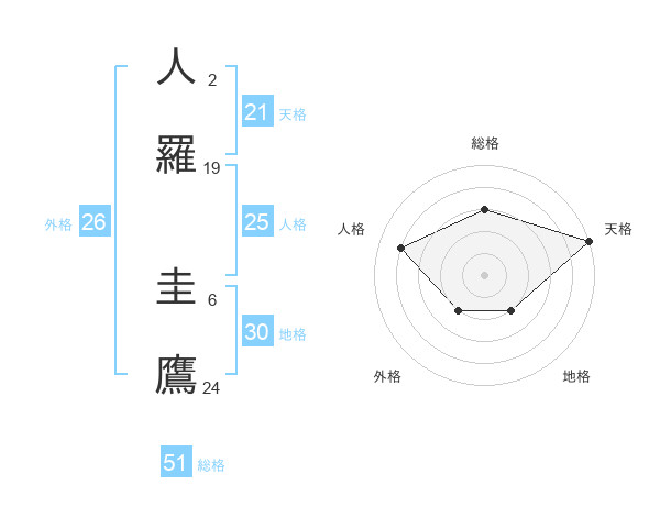 人羅 圭鷹さんの総格は51画の3点!