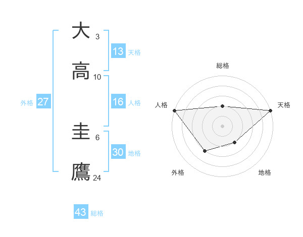 大高 圭鷹さんを姓名の画数から五運を鑑定