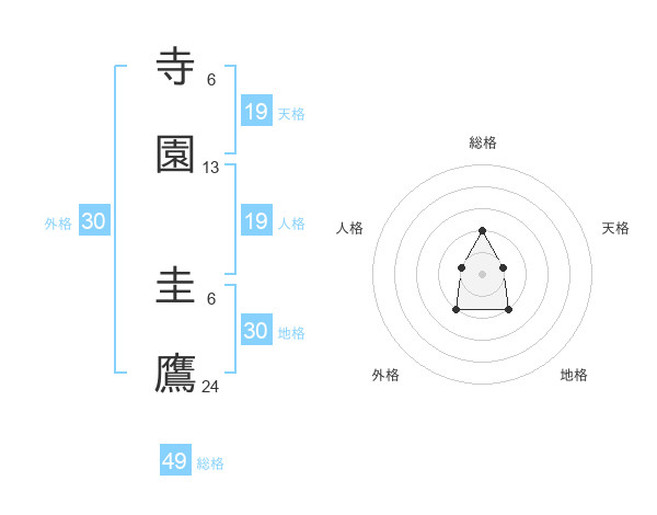 寺園 圭鷹さんの総格は49画の2点!