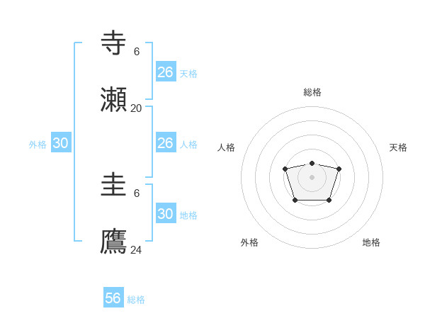 寺瀬 圭鷹さんを姓名の画数から五運を鑑定