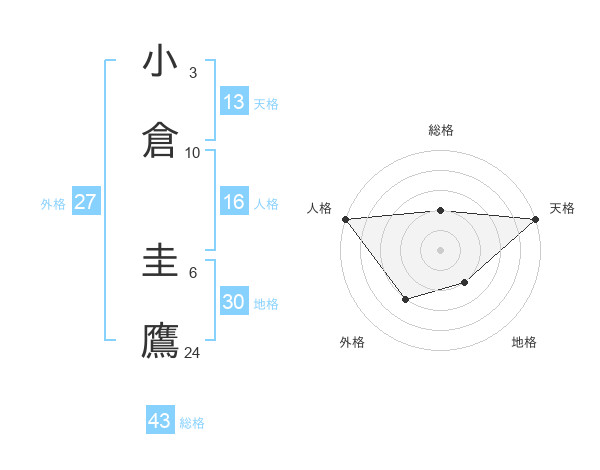 小倉 圭鷹さんの天格は13画の5点!