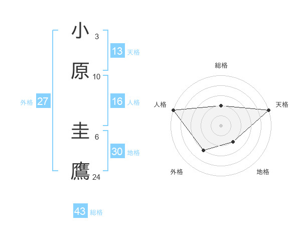 小原 圭鷹さんの天格は13画の5点!