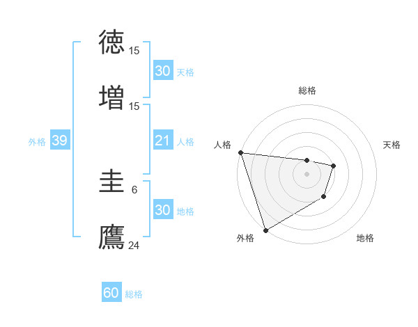 徳増 圭鷹さんの天格は30画の2点!