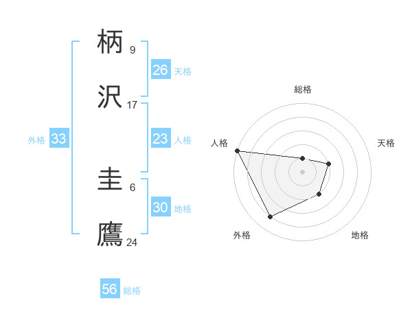 柄沢 圭鷹さんを姓名の画数から五運を鑑定