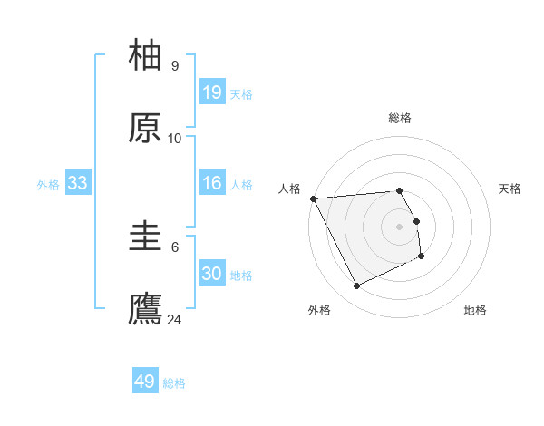 柚原 圭鷹さんの総格は49画の2点!
