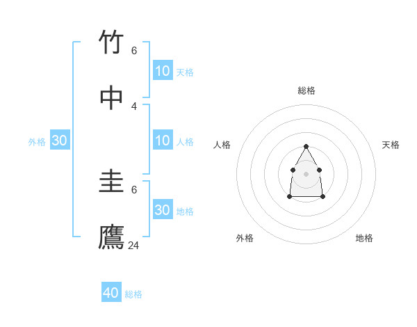 竹中 圭鷹さんの総格は40画の2点!