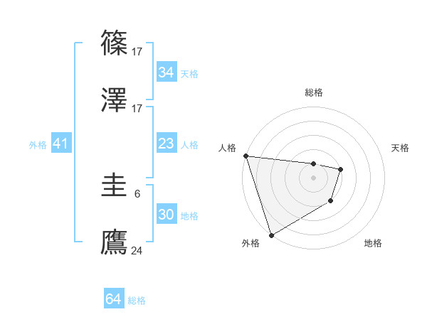 篠澤 圭鷹さんを姓名の画数から五運を鑑定