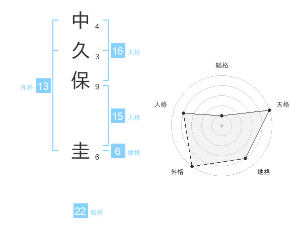 中久保 圭さんの外格は13画の5点!