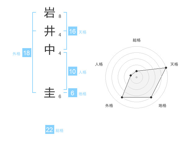 岩井中 圭さんの天格は16画の5点!