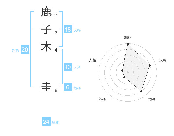 鹿子木 圭さんを姓名の画数から五運を鑑定