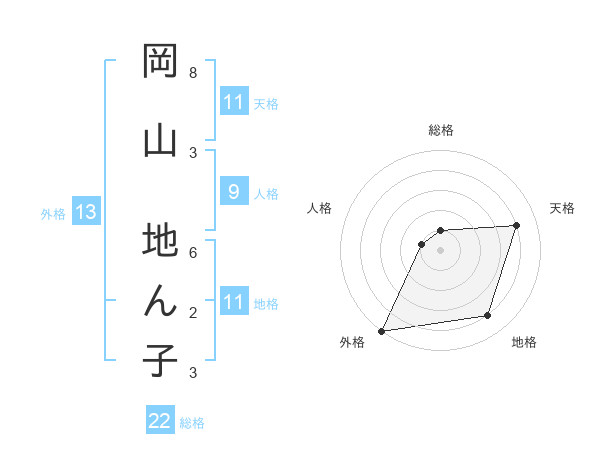 岡山 地ん子さんを姓名の画数から五運を鑑定