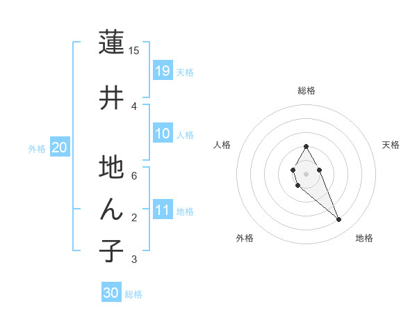 蓮井 地ん子さんを姓名の画数から五運を鑑定