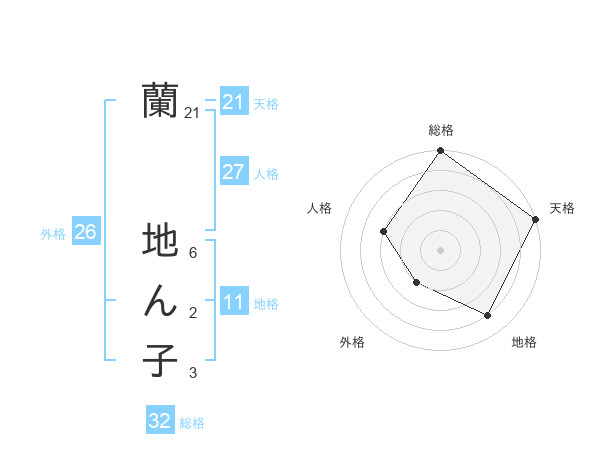 蘭 地ん子さんの天格は21画の5点!
