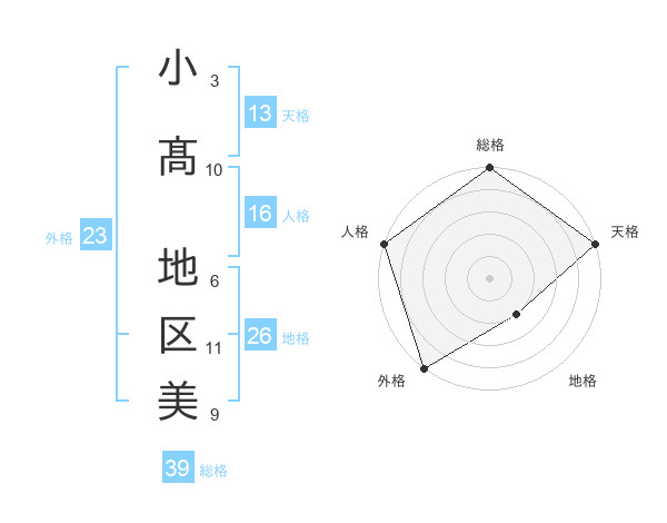 小髙 地区美さんを姓名の画数から五運を鑑定