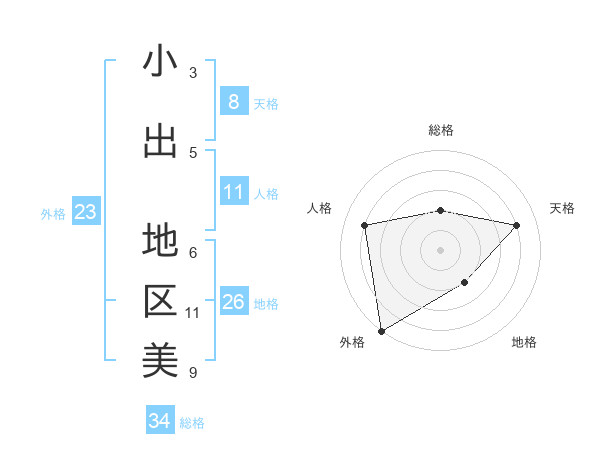 小出 地区美さんの天格は8画の4点!
