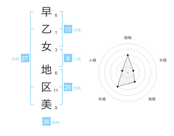 早乙女 地区美さんの総格は36画の3点!