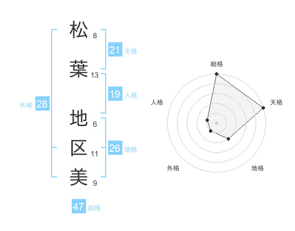松葉 地区美さんを姓名の画数から五運を鑑定
