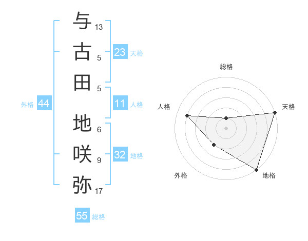 与古田 地咲弥さんを姓名の画数から五運を鑑定