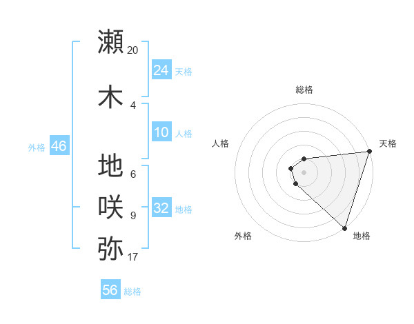 瀬木 地咲弥さんを姓名の画数から五運を鑑定